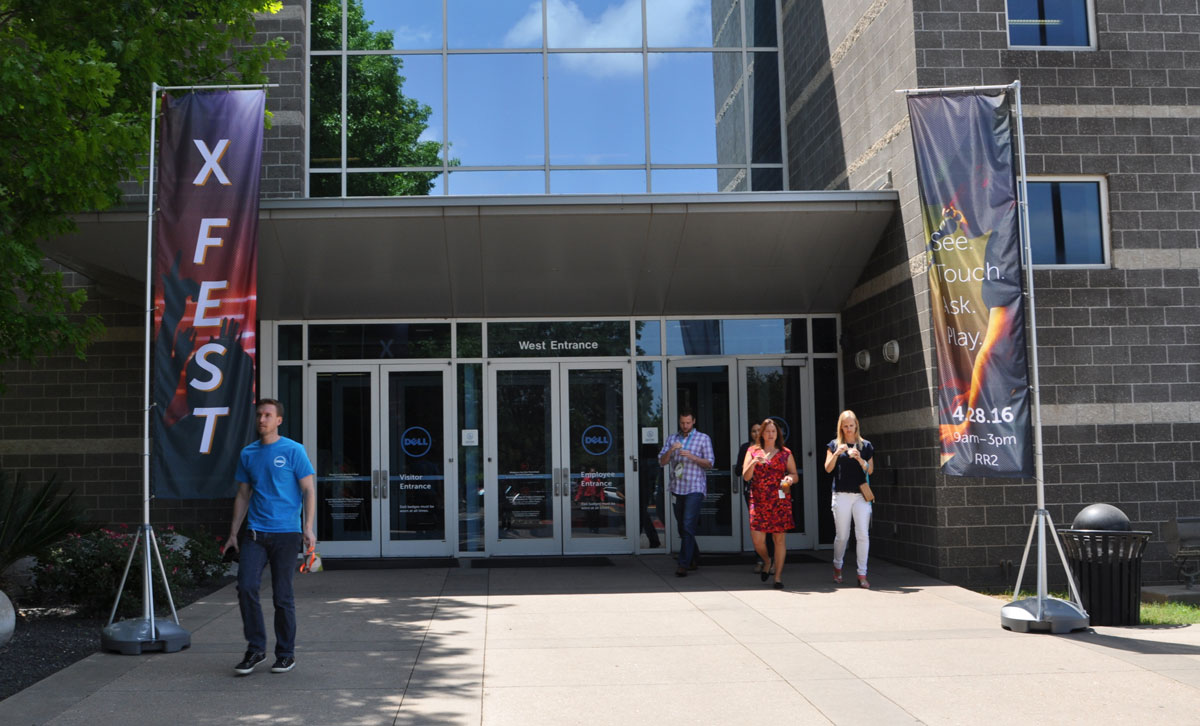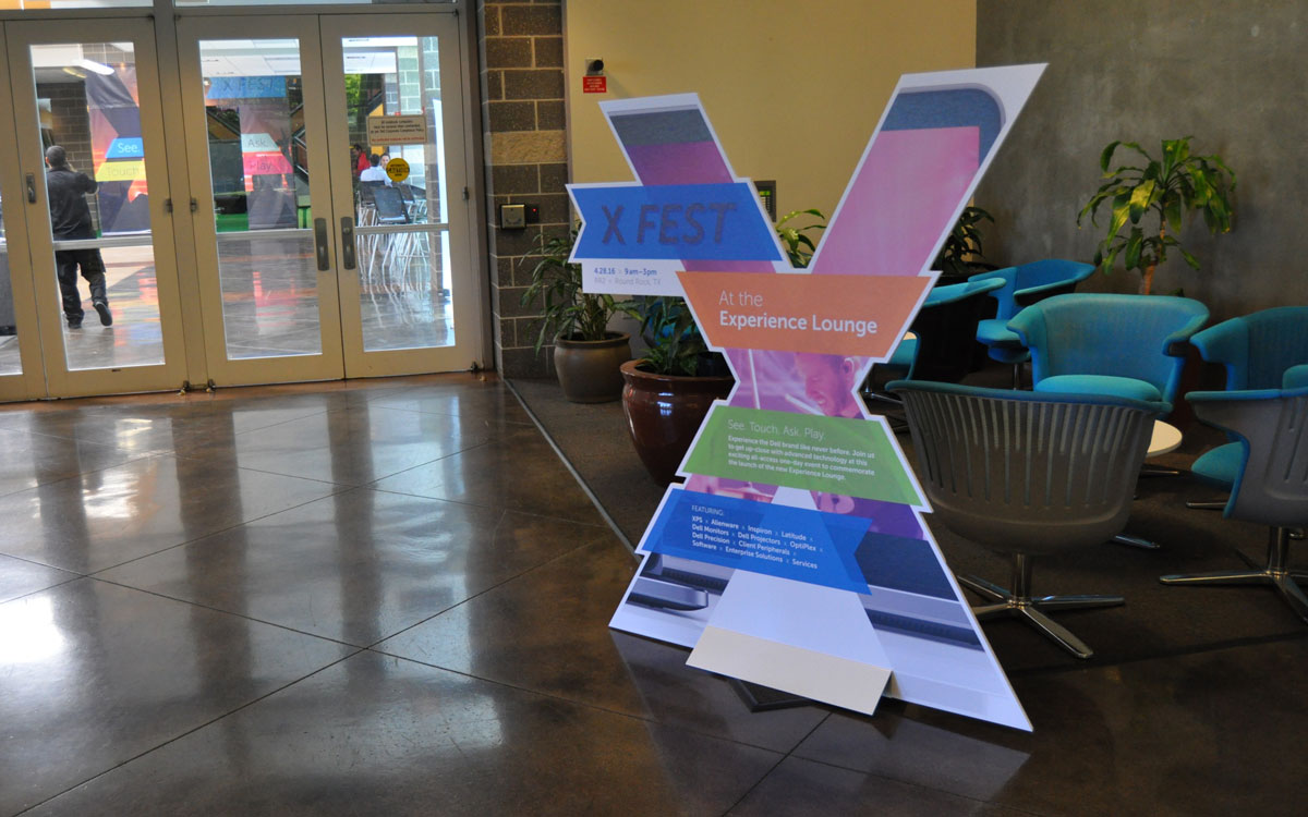 In 2016, Dell built out a space within the main campus with the intention of giving employees a more hands-on, engaging way to see and handle the newest products that the company releases. To commemorate this, an event was planned to celebrate with all central Texas employees invited. Our team was heavily involved in bringing the event to life, primarily in creating an identity that would add to the excitement, as well as working on the programming that attendees would engage in. The X-Fest theme was born out of Austin's notoriety for fantastic live music events like Austin City Limits and South by Southwest. The event included a live DJ, covering the entire space with green turf to simulate grass, a digital graffiti wall, food trucks, and more. Both attendance and engagement for X-Fest were a great success, and both increased in 2017.
